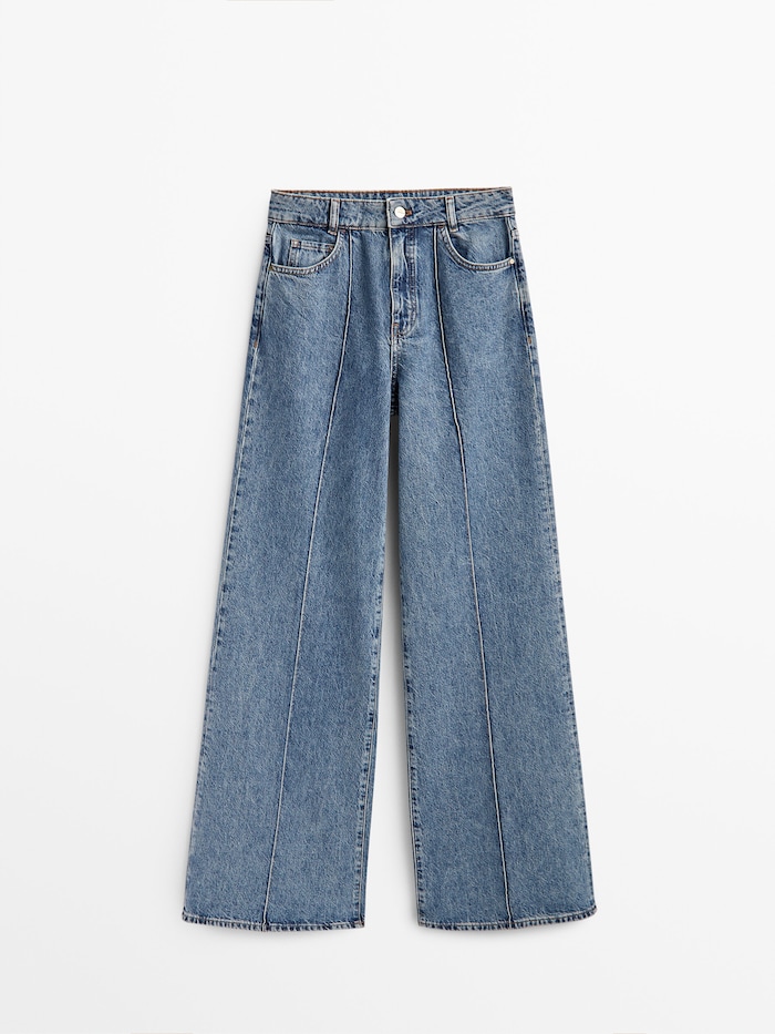 Ψηλόμεσο τζιν παντελόνι με φαρδύ μπατζάκι Massimo Dutti