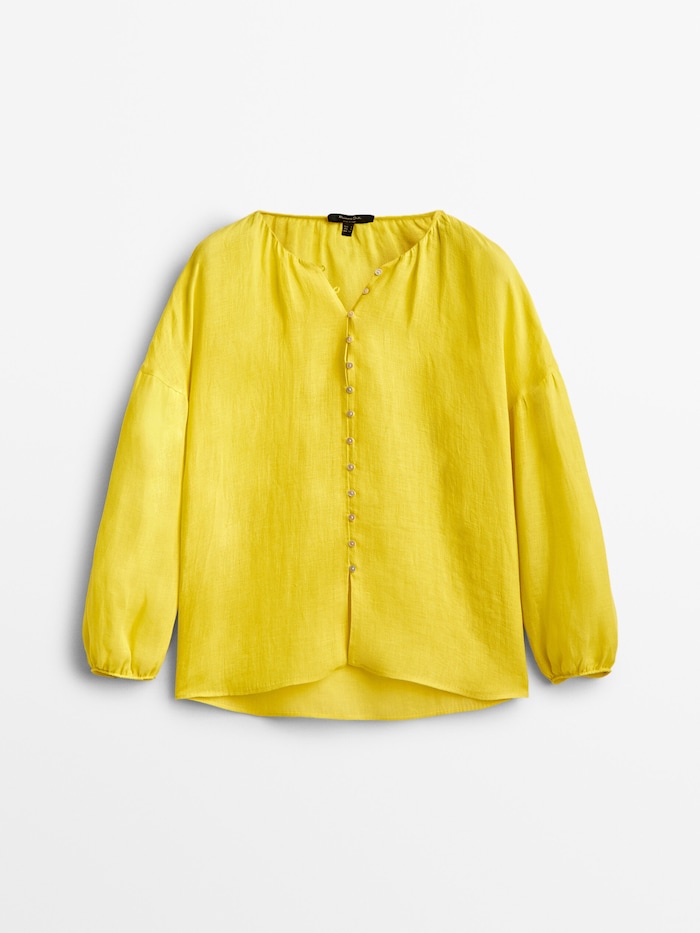 Πουκάμισο με κουμπιά από 100% λινό Massimo Dutti