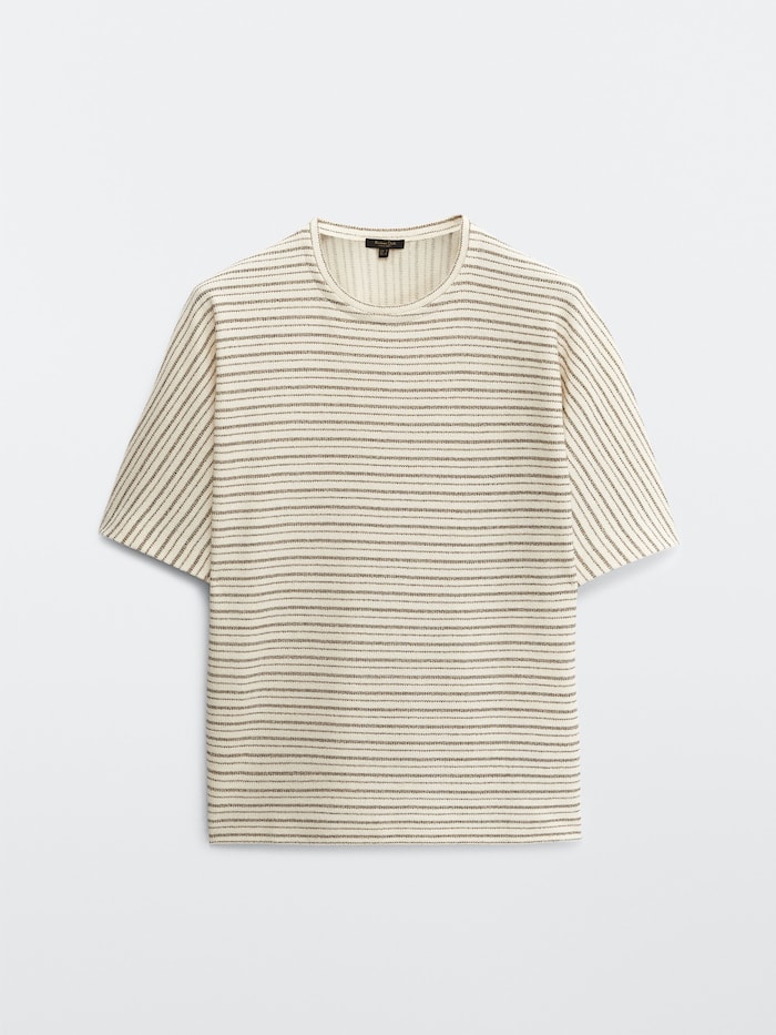Κοντομάνικη ριγέ βαμβακερή μπλούζα Massimo Dutti