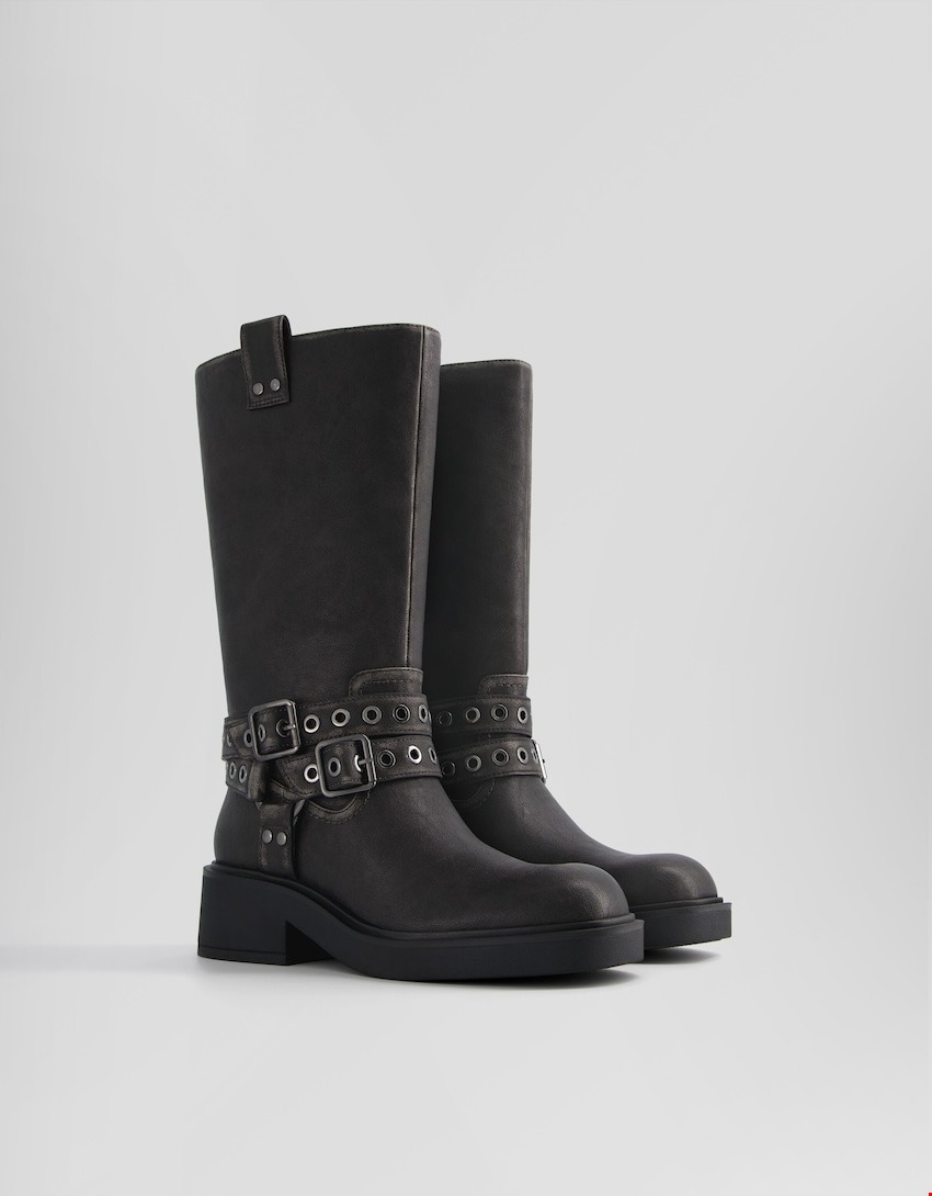 Γνωστές και ως biker boots, οι μπότες αυτές δεν είναι ακριβώς καινούργιο trend. Με εξαίρεση τον περσινό χειμώνα που οι knee - high boots είχαν την πρωτοκαθεδρία στις τάσεις στην εν λόγω γραμμή παπουτσιού, οι biker boots ήταν "thing” τρεις σεζόν πριν. Ωστόσο, φέτος επιστρέφουν ως "moto boots” και η βασική διαφορά τους με την πρότερη εκδοχή τους είναι η φθαρμένη όψη και μεγάλες αγκράφες στο πλάι.