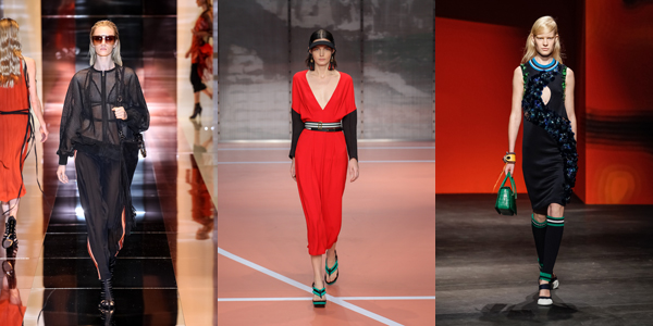 Glam sport: Με ισχυρές δόσεις glamour ερμήνευσαν οι Ιταλοί designers το αθλητικό πνεύμα που επικράτησε σε Νέα Υόρκη και Λονδίνο, με highlights τα Marni σκίαστρα, τα διχτυωτά Gucci T-shirts και τις αθλητικές κάλτσες Prada.