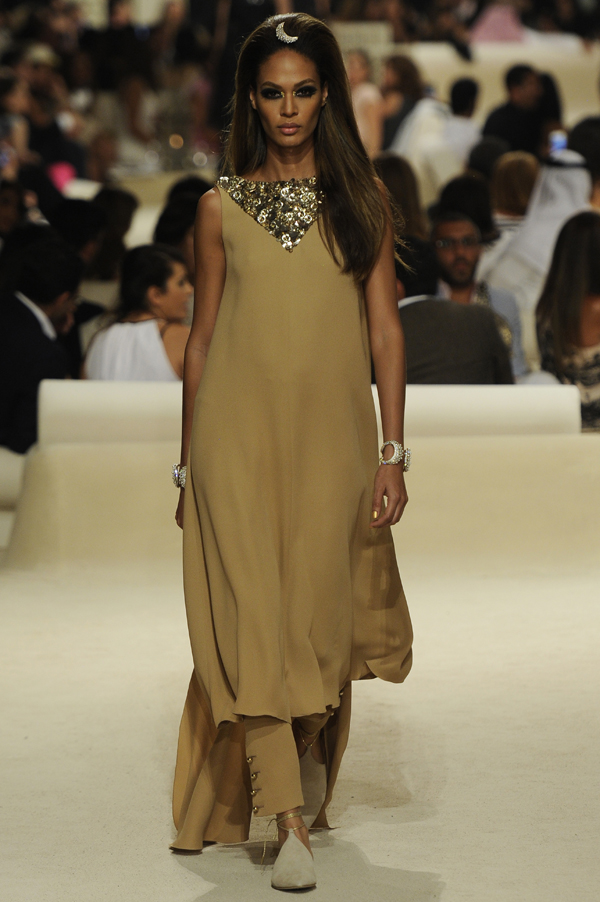 Ρευστές σιλουέτες ντύθηκαν με πολυτελή υφάσματα και συνδυάστηκαν με μοτίβα εμπνευσμένα από περίτεχνα αραβουργήματα της ισλαμικής τέχνης. H τελική «πινελιά»; Στοιχεία από τις δεκαετίες του 1960 και 1970 εξασφάλισαν την απήχηση σε Δύση και Ανατολή.