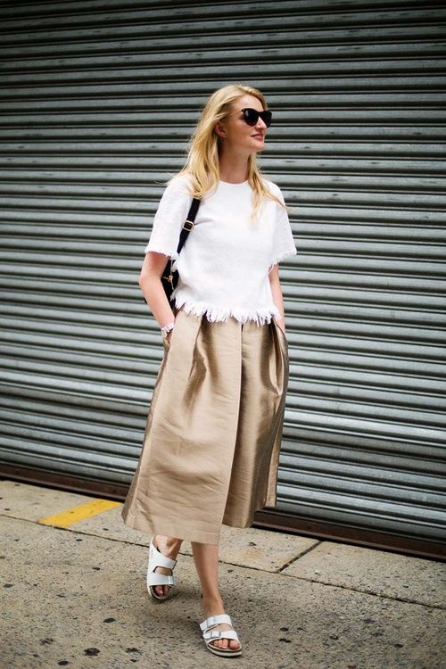 Στην περίπτωση που θέλεις να εντάξεις την μεταλλιζέ σου φούστα σε κάποια πρωινή εμφάνιση, σού προτείνουμε να την συνδυάσεις με τα Birkenstock σου. Μπορεί εκ πρώτης όψεως να σου φαίνεται αταίριαστος συνδυασμός, ωστόσο οι αντιθέσεις στο στυλ πάντα φέρνουν καλά αποτελέσματα!