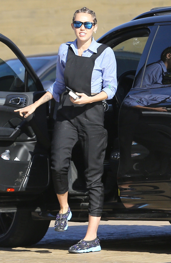 Η Miley Cyrus συνδύασε τα sneakers της με ολόσωμη φόρμα και πουκάμισο σε ένα look αναπάντεχα επιτυχημένο