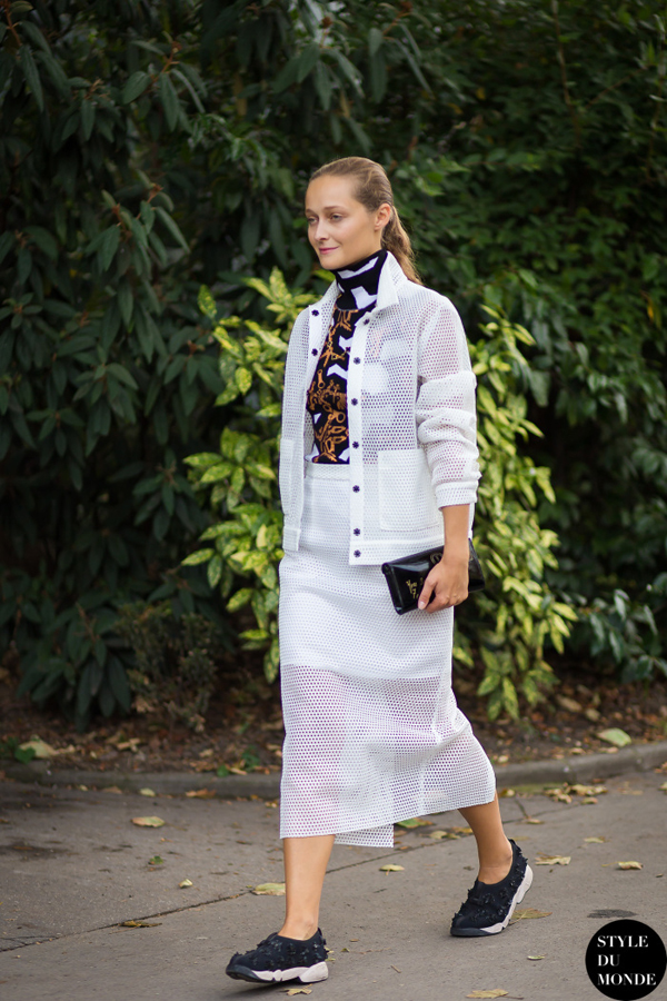 H Daria Shapovalova δημιούργησε ένα από τα πιο stylish looks συνδυάζοντας τα sneakers της με see through φούστα και ζιβάγκο με prints.
