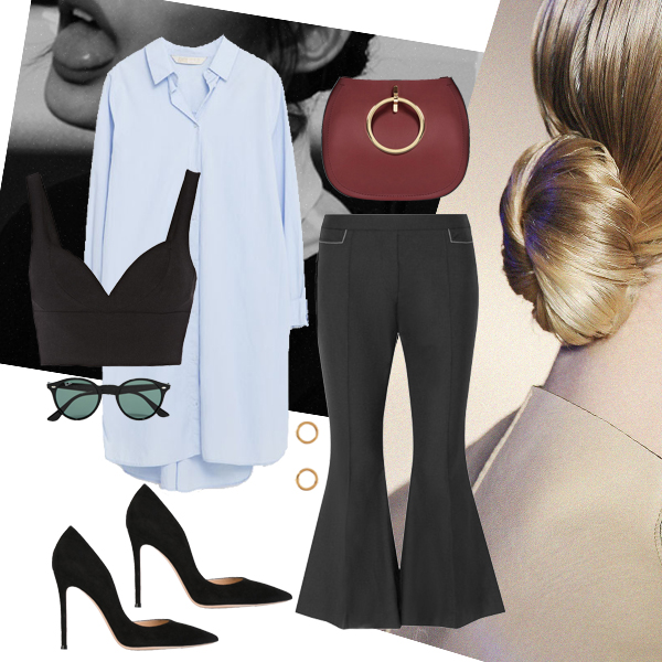Πουκάμισο ZARA. Toπ Michael Michael Kors, NET-A-PORTER.COM. Παντελόνι Ellery, NET-A-PORTER.COM. Παπούτσια Gianvito Rossi, KALOGIROU.COM. Γυαλιά ηλίου Ray Ban, LUXOTTICA HELLAS. Σκουλαρίκια H&M. Τσάντα ZARA.