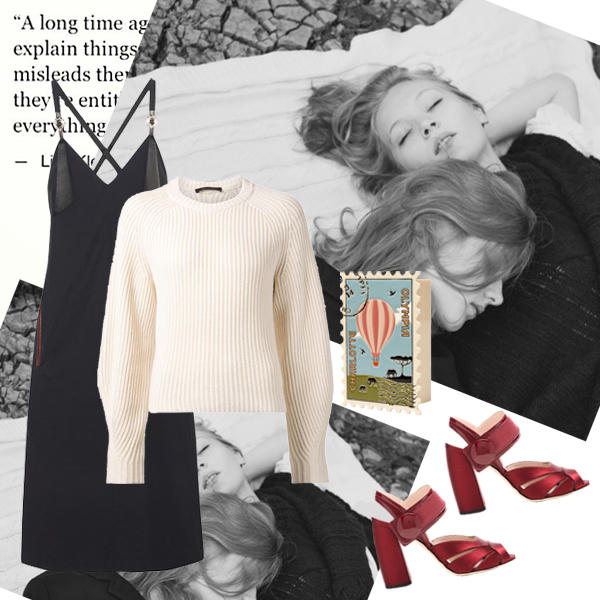 Φόρεμα Toga, NET-A-PORTER.COM. Πουλόβερ The Row, FARFETCH.COM. Clutch Charlotte Olympia, NET-A-PORTER.COM. Παπούτσια Miu Miu, MYTHERESA.COM.
