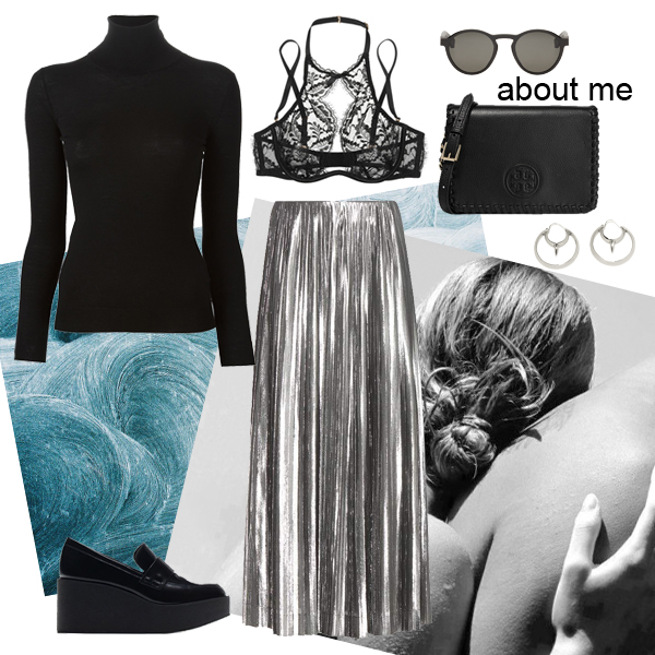 Ζιβάγκο Ermanno Scervino, FARFETCH.COM. Πλισέ φούστα Loewe, MYTHERESA.COM. Wedge loafers Uterque, UTERQUE.COM. Εσώρουχο Agent Provocateur, NET-A-PORTER.COM. Τσάντα ώμου Tory Burch, NET-A-PORTER.COM. Γυαλιά ηλίου Maison Margiela, SSENSE.COM. Σκουλαρίκια Pamela Love, PAMELALOVE.COM.