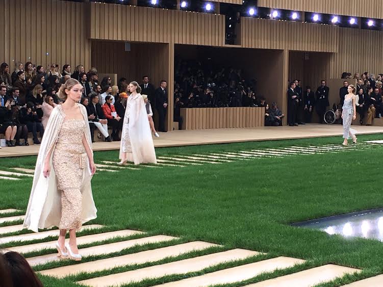 Αποκλειστική φωτογραφία από την couture πασαρέλα του οίκου Chanel για την Άνοιξη του '16, που εξασφάλισε η διευθύντρια σύνταξης του Madame Figaro, Βάσω Παπαγιαννακοπούλου, η οποία βρέθηκε στην επίδειξη στο Grand Palais.