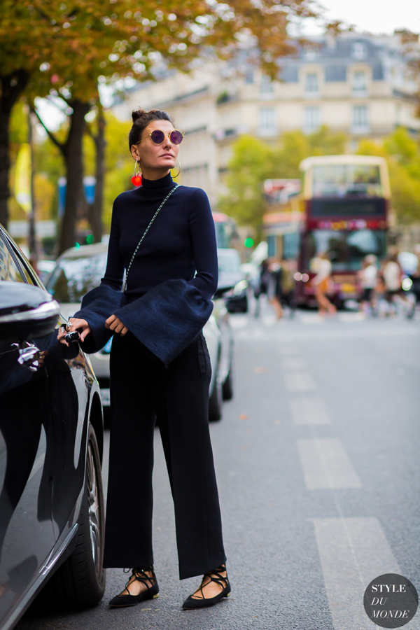 Τα wide leg trousers (ακόμα και τα παντελόνια καμπάνα) χαρίζουν μία δυναμική σιλουέτα και, αναμφίβολα, ενισχύουν την πειθώ σου *wink*. Ιδανικός συνδυασμός; Με ένα πουκάμισο που δένει στον λαιμό.