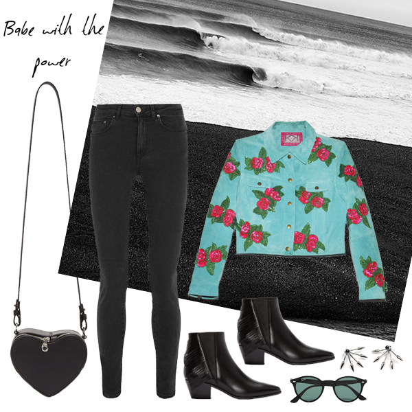 Σουέτ τζάκετ Konstantina Konstantinidi, KKATHENS.COM. Μάθε περισσότερα για τη σχεδιάστρια εδώ! Denim παντελόνι Acne Studios, NET-A-PORTER.COM. Ankle boots Saint Laurent, LUISA. Γυαλιά ηλίου Ray Ban, LUXOTTICA HELLAS. Σκουλαρίκια Pamela Love, PAMELALOVE.COM. Tσάντα ώμου Fleet Ilya, SSENSE.COM.