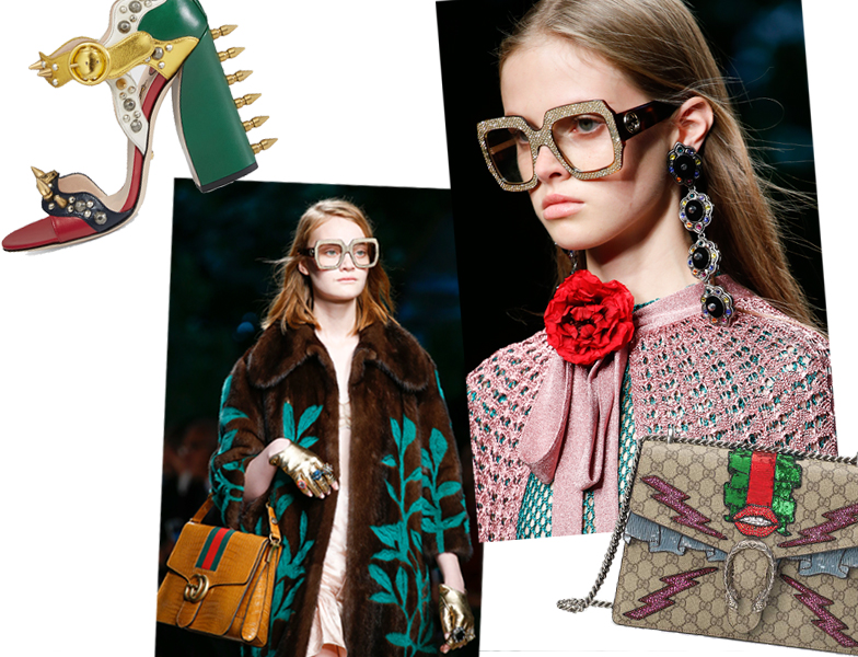 Έχεις νιώσει ποτέ πως θέλεις να φορέσεις ένα statement outfit το οποίο ωστόσο δεν ξέρεις από που να ξεκινήσεις να το δημιουργείς; Το να λάμψεις μέσα σε ένα έντονο look γεμάτο prints, ενδεχομένως να μοιάζει σαν πρόκληση όμως όταν αυτό το look προέρχεται από την πασαρέλα, ή έστω παίρνει την έμπνευση του από κάποιο catwalk look (ειδικά όταν πρόκειται για τον τον Gucci), τότε σίγουρα το ντύσιμο σου θα έχει κάτι να πει στον περίγυρό σου. Ο Ιταλικός οίκος για το καλοκαίρι του '16, παρουσίασε υπό την καλλιτεχνική διεύθυνση του Alessandro Michele ό,τι ακριβώς το fashion κοινό λαχταρούσε να δει. Μια ωδή στην urban αισθητική, μία αναφορά από τα στοιχεία της φύσης και μερικές εικονογραφήσεις από εκείνα τα πλάσματα της μυθολογίας για τα οποία μαθαίναμε στο σχολείο, ήταν αρκετά ώστε ο Ιταλός νεοαφιχθείς δημιουργός να αφήσει τις καλύτερες των εντυπώσεων στην Εβδομάδα Μόδας του Μιλάνου που μας πέρασε. Δεν θα μπορούσαμε λοιπόν παρά να περιμένουμε με αγωνία τις επόμενες προτάσεις του για την χειμερινή συλλογή του οίκου Gucci για το '16.