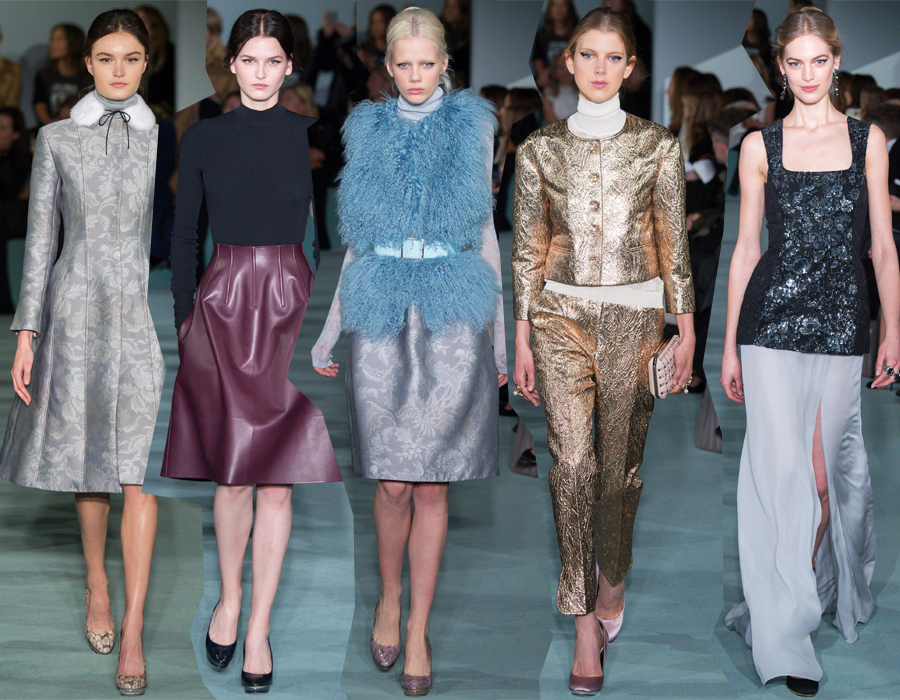 Ο νεοαφιχθείς creative director του de la Renta, είναι ο Peter Copping (ο οποίος μάλιστα έχει υπάρξει και knitwear innovator στον οίκο της Nina Ricci). Ως εκ τούτου μία από εκείνες τις μοντέρνες πινελιές που πρόσθεσε στην καινούρια του χειμερινή συλλογή ήταν τα μικροσκοπικά πλεκτά που συνδύασε με φούστες, κάνοντας παράλληλα και layering πάνω από φορέματα. Όσο για τα υπόλοιπα κομμάτια, εκείνα είχαν να κάνουν με μια σειρά από cocktail φορέματα άλλοτε από οργάντζα και άλλοτε από μετάξι. Το μπροκάρ είχε και σε αυτή την συλλογή περίοπτη θέση, ενώ εκείνα που κέρδισαν τις εντυπώσεις ήταν αδιαμφισβήτητα τα εντυπωσιακά bustiers με τα κεντημένα κρύσταλλα της συλλογής.