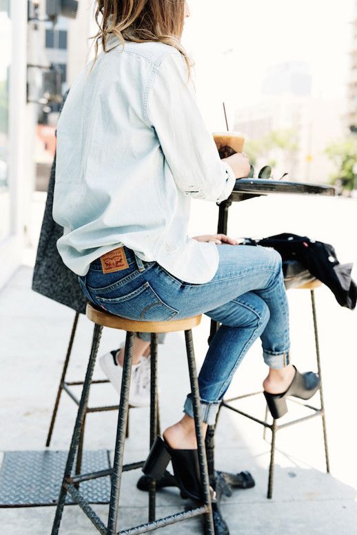Εάν θέλεις να απογειώσεις την 90s τάση μέσα από μια πιο σύγχρονη ματιά, συνδύασε τα mules σου με ένα τζιν, ψηλολοκάβαλο παντελόνι και ένα φαρδύ, λευκό πουκάμισο.