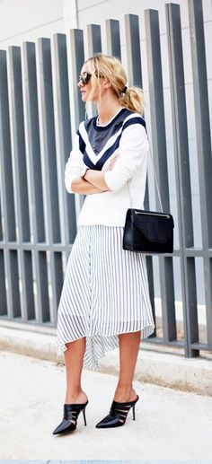 H Pernille Teisbaek φόρεσε τα μαύρα της mules με λευκό φόρεμα, αποθεώνοντας έτσι την monochromatic τάση.