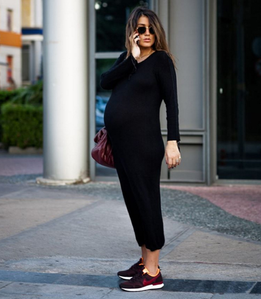 Όπως φαίνεται η «στολή» της εγκυμοσύνης είναι ένα ζευγάρι statement sneakers σε συνδυασμό girlie φορέματα σε άνετη γραμμή. Φωτογραφία: Instagram/ngoldenberg