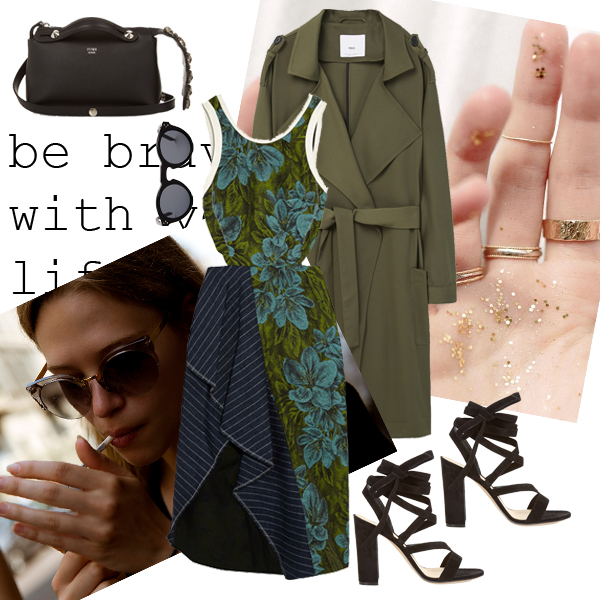 Trench coat MANGO. Φόρεμα 3.1 Phillip Lim, NET-A-PORTER.COM. Ψηλοτάκουνα πέδιλα Gianvito Rossi, KALOGIROU.COM. Γυαλιά ηλίου Celine, MATCHESFASHION.COM. Tσάντα Fendi, FENDI BOUTIQUE.