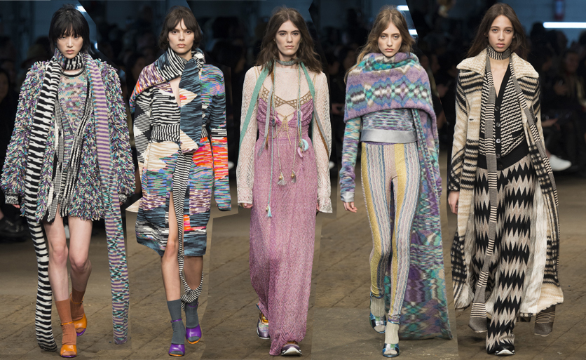 Μια αρκετά νεανική και συνάμα νωχελική συλλογή παρουσίασε η Angela Missoni για τον επόμενο χειμώνα. Πολύχρωμα sweater dresses, λεπτά 90's μαντήλια, πλεκτά κοστούμια και σταυρωτά παλτό "περπάτησαν" στην πασαρέλα γεμάτα από ιταλιάνικο αέρα. "Οσο πιο μακριά τόσο πιο καλά" ήταν το μότο της Ιταλίδας δημιουργού η οποία παραδέχτηκε πως σημείο αναφοράς για την εν λόγω συλλογή ήταν αδιαμφισβήτητα η disco - glam εποχή των 70s.