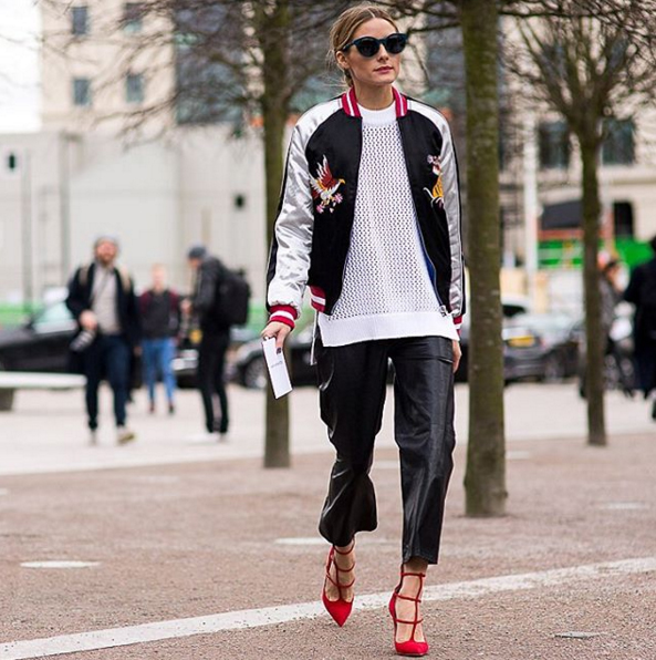 H Olivia Palermo με bomber jacket Τοpshop που είναι ήδη sold out! Φωτογραφία: Instagram/@netaporter