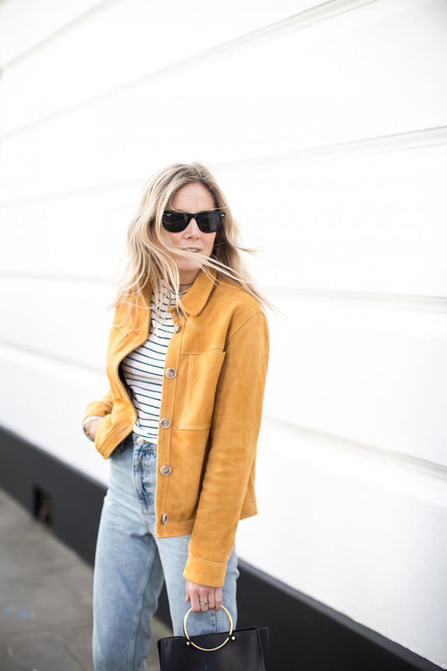To σουέτ jacket είναι το key item της μεταβατικής σεζόν και ιδανικά συνδυάζεται με μαρινιέρα για chic ανοιξιάτικα looks. Φωτογραφία: Fashion Me Now