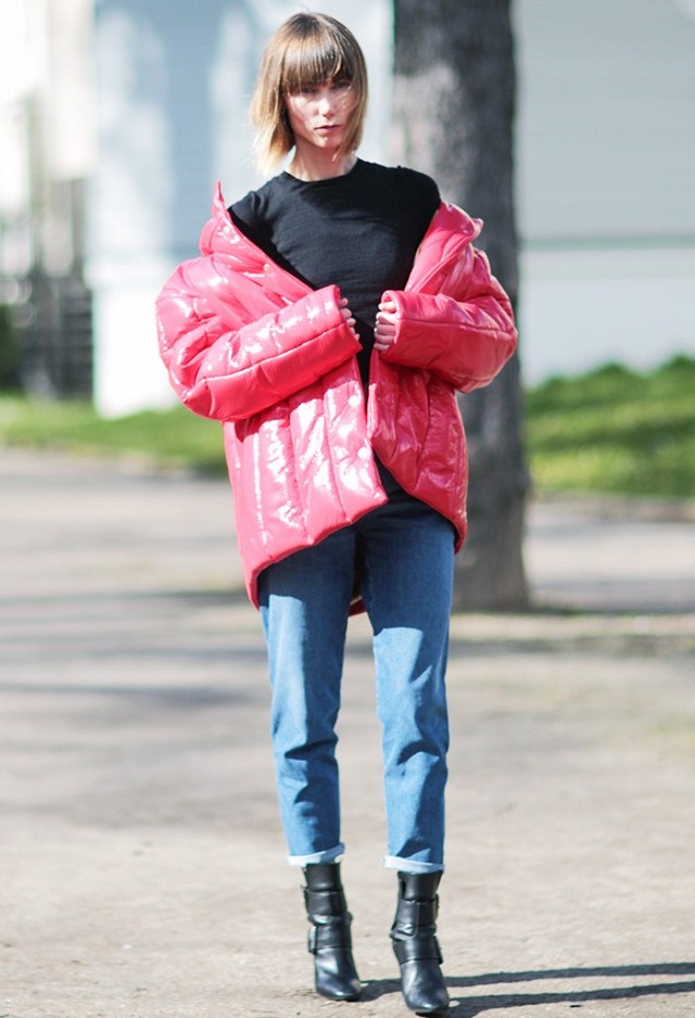 Η Anya Ziourova με μπουφάν Balenciaga και μπότες Pierre Hardy