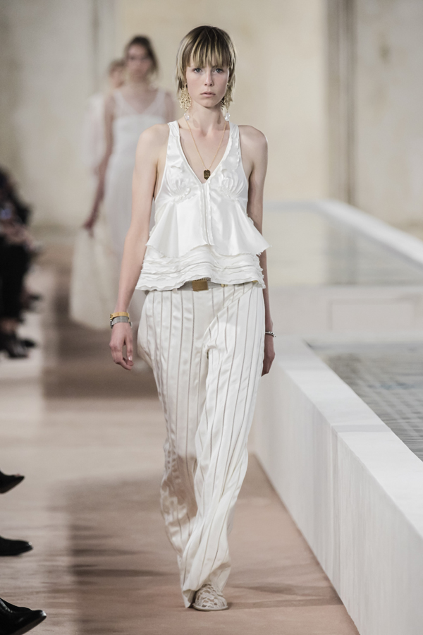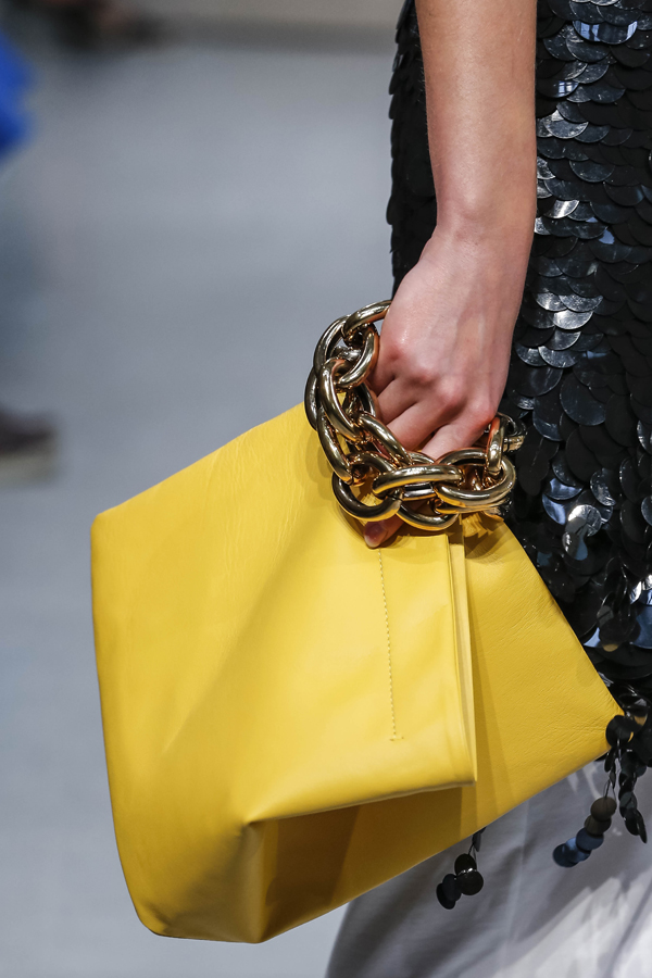 Το relaxed αίσθημα και η χρηστικότητα της pouch bag εμπλουτίζεται με artistic «παρελκόμενα», αναβαθμίζοντας το εύκολο suiting αλλά και αντικαθιστώντας το layering κοσμημάτων. Φωτογραφία: Marni Άνοιξη/Καλοκαίρι 2016.
