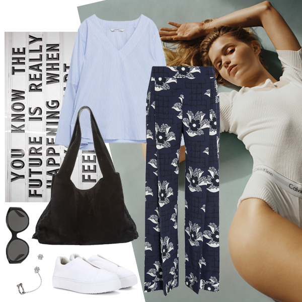 Τοπ ZARA. Παντελόνι Victoria Beckham, NET-A-PORTER.COM. Sneakers Eytys, MYTHERESA.COM. Τσάντα The Row, MATCHESFASHION.COM. Γυαλιά ηλίου Oliver Peoples, LUXOTTICA HELLAS. Ear cuff La Vie Jewelry, AESTHET.COM.