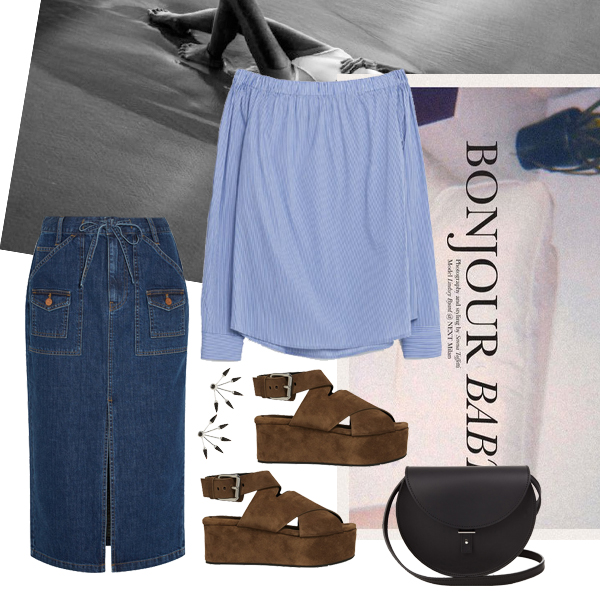 Toπ ZARA. Φούστα Madewell, NET-A-PORTER.COM. Πλατφόρμες Alexander Wang, NET-A-PORTER.COM. Τσάντα ώμου Pb 0110, MATCHESFASHION.COM. Σκουλαρίκια Pamela Love, SSENSE.COM.