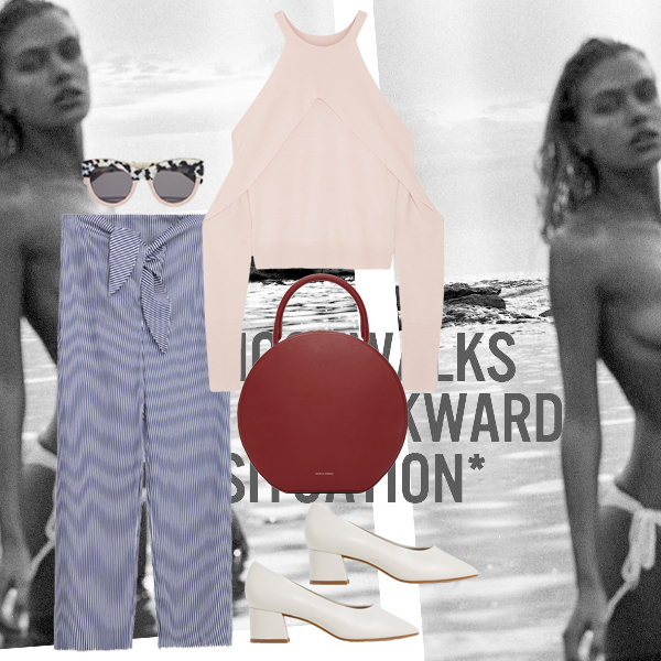 Toπ Dion Lee, NET-A-PORTER.COM. Culottes ZARA. Flats ZARA. Γυαλιά ηλίου Stella McCartney, LUISA. Τσάντα Mansur Gavriel, SSENSE.COM.