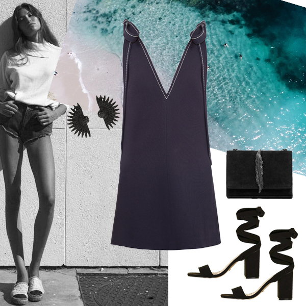 Φόρεμα Chloe, LUISA. Δετά παπούτσια Topshop, TOPSHOP.COM. Τσάντα ώμου ZARA. Σκουλαρίκια Lulu Frost, MATCHESFASHION.COM.