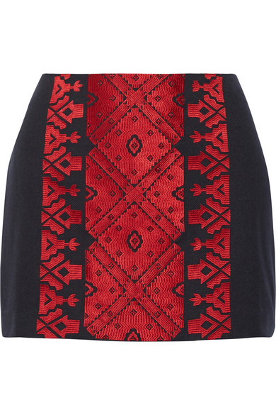 H Emmy Rossum με κοκκινόμαυρο, μπροκάρ φόρεμα δια χειρός Oscar de la Renta.
