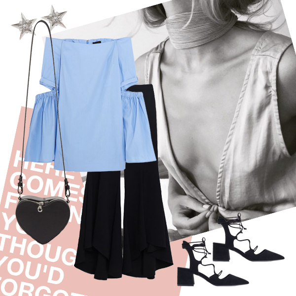 Τοπ Marques'Almeida, MATCHESFASHION.COM. Παντελόνι Tod's, NET-A-PORTER.COM. Sneakers Acne Studios, SSENSE.COM. Γυαλιά ηλίου Illesteva, NET-A-PORTER.COM. Τσάντα ώμου Maison Margiela, SSENSE.COM.