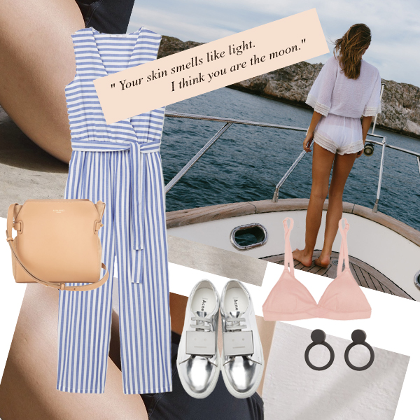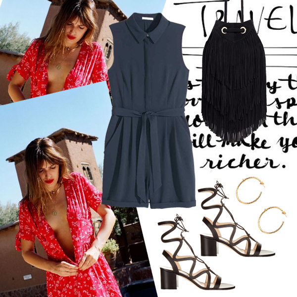 Playsuit H&M. Τσάντα ZARA. Παπούτσια Gianvito Rossi, KALOGIROU.COM. Σκουλαρίκια Theodora Warre, MATCHESFASHION.COM.