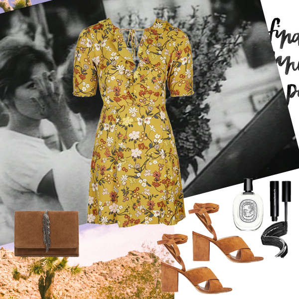 Φόρεμα Topshop, TOPSHOP.COM. Παπούτσια Gianvito Rossi, KALOGIROU.COM. Τσάντα ώμου ZARA. Άρωμα Florabellio Diptyque, ATTICA. Μάσκαρα Bobbi Brown, ATTICA.