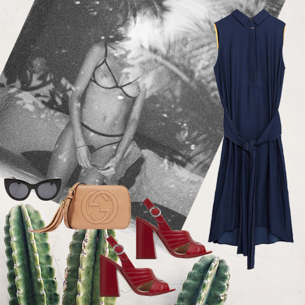 Shirt dress ZARA. Τσάντα ώμου Gucci, GUCCI BOUTIQUE. Παπούτσια ZARA. Γυαλιά ηλίου OYSHO.