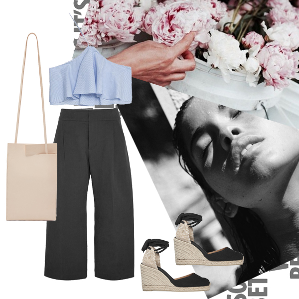 Τοπ ZARA. Culottes Marni, NET-A-PORTER.COM. Εspadrilles Castaner, ATTICA GOLDEN HALL. Τσάντα Chiyome, SSENSE.COM.
