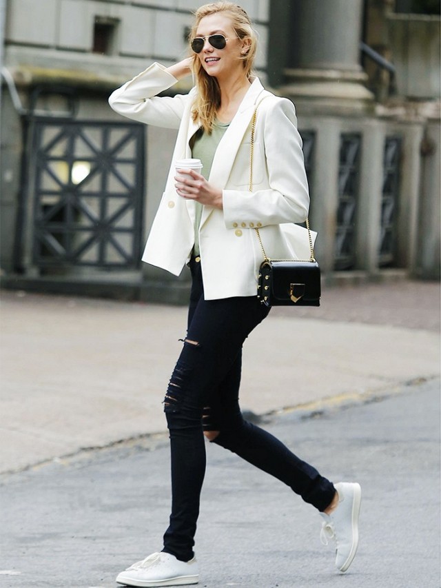 H Karlie Kloss αποθεώνοντας το casual look με την εν λόγω τσάντα.
