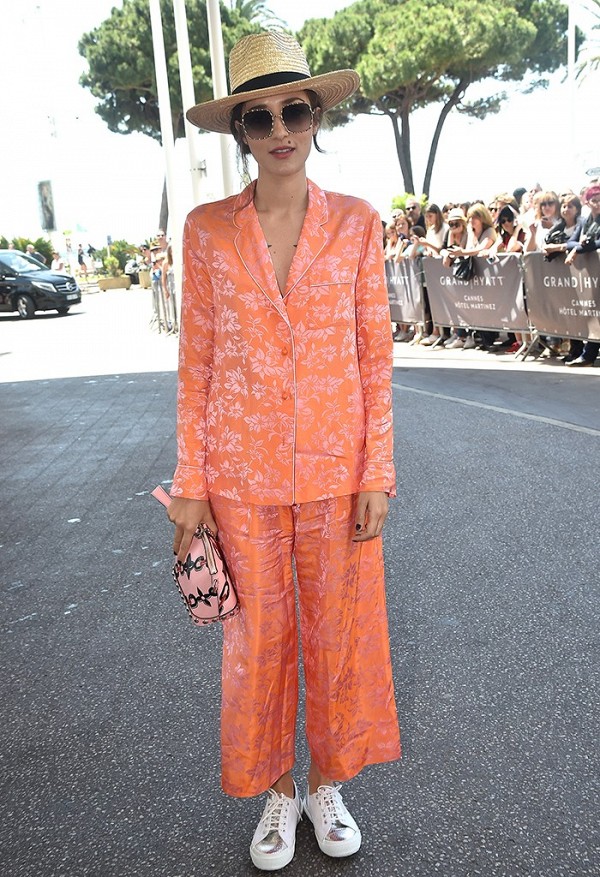 H Eleonora Carisi μέσα από αυτό το look υιοθέτησε 2 τάσεις: το pajama trouser αλλά και το trouser suit.
