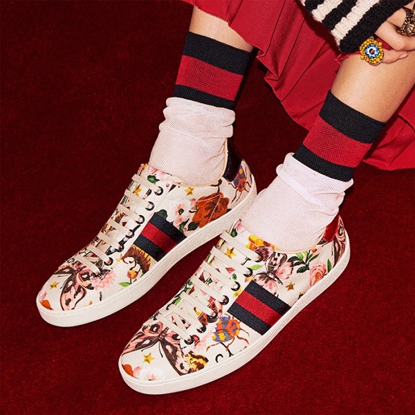 Φλοράλ sneakers, bomber jackets, πλισέ φορέματα, αέρινες φούστες αλλά και κεντημένα denim μπαίνουν στο κέντρο της προσοχής, ενώ ακόμη μία εκδοχή της αγαπημένης τσάντας Dionysus αλλά και των Princetown loafers γίνονται διαθέσιμα.