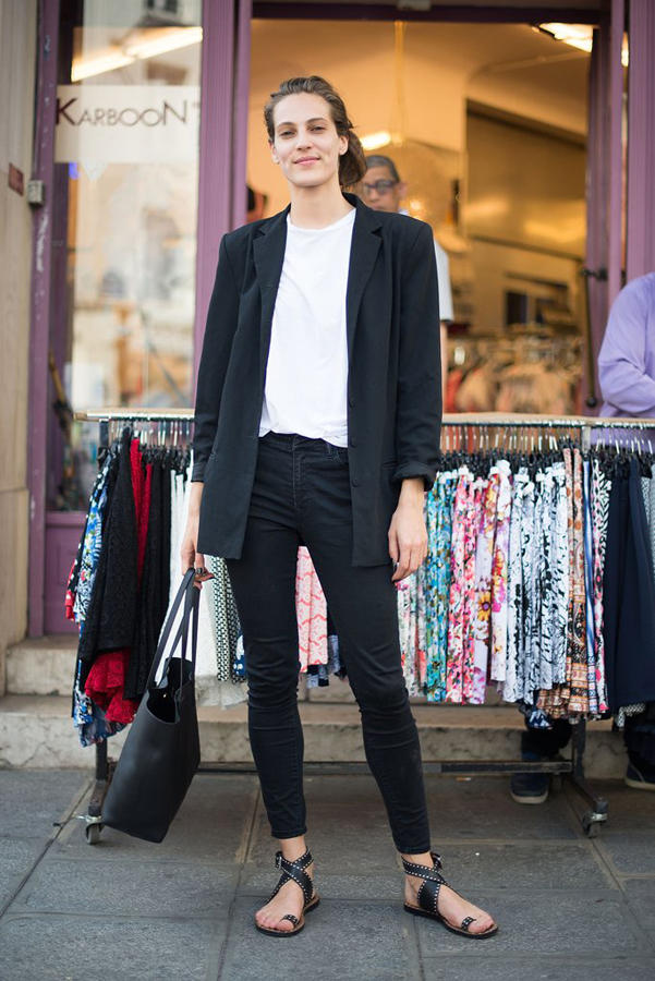 Αναβάθμισε το ασπρόμαυρο κοστούμι σου με τα αγαπημένα σου φλατ σανδάλια.