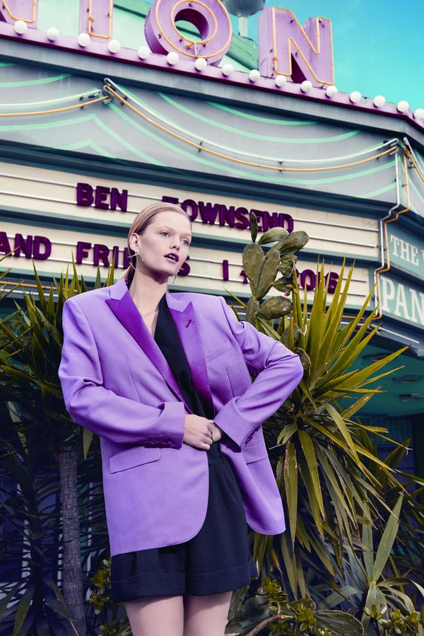 Μεταξωτό σακάκι, SAINT LAURENT. Ολόσωμη φόρμα-σορτς, COMPTOIR DES COTONNIERS. Κοσμήματα Hermes, HERMES BOUTIQUE.