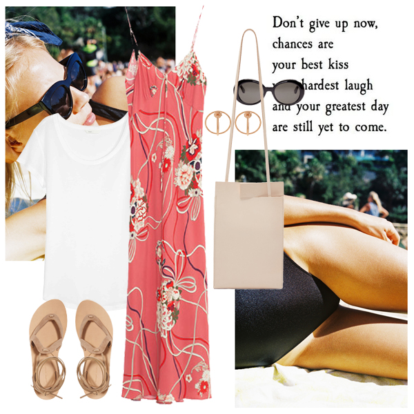 Φόρεμα ZARA. Τ-shirt H&M. Τσάντα ώμου Chiyome, SSENSE.COM. Σανδάλια Valia Gabriel, NET-A-PORTER.COM. Σκουλαρίκια Charlotte Chesnais, ΜΑΤCHESFASHION.COM. Γυαλιά ηλίου Saint Laurent, SAFILO.