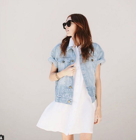 2. Συνδύασε το φόρεμά σου με ένα oversized, denim πουκάμισο.