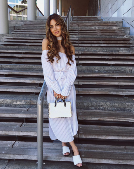 4. Συνδύασε το με φλατ slide ons και μία τετράγωνη τσάντα.