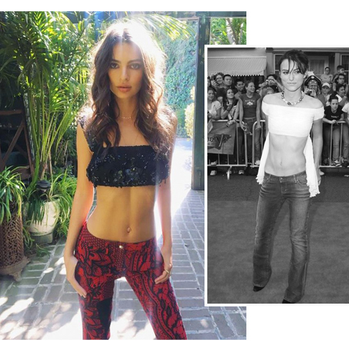 Η Emily Ratakowski συνδυάζει το χαμηλοκάβαλο παντελόνι με ένα crop top σε μια εμφάνιση που δεν θα μπορούσε να είναι περισσότερο 90ς.