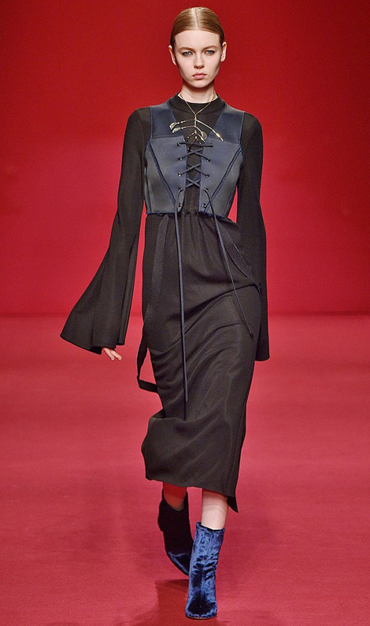 O οίκος Ellery σου δείχνει πως να αναβαθμίσεις το μικρό μαύρο φόρεμα με τον πιο πρωτότυπο τρόπο. (Οι βελούδινες μπότες αποτελούν extra bonus).