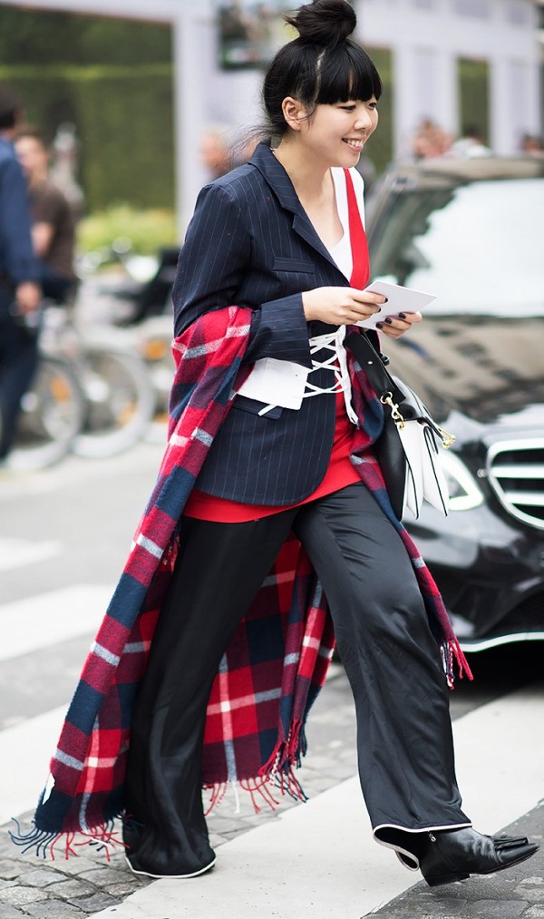Η Susie Lau δοκίμασε την τάση με τον λευκό κορσέ, ένα κομμάτι που είδαμε στην πασαρέλα του οίκου Prada για το φθινόπωρο του '16.