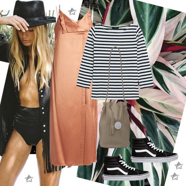 Φόρεμα Edun, MATCHESFASHION.COM. Toπ J.Crew, NET-A-PORTER.COM. Τσάντα ώμου Building Block, SSENSE.COM. Sneakers VANS.