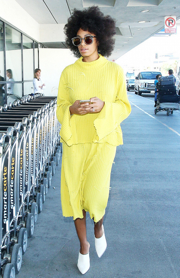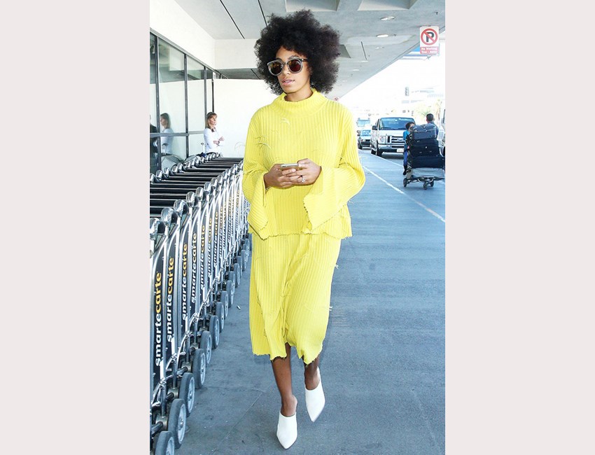 Τα απαλά χρώματα όπως για παράδειγμα το λεμονί Marques'Almeida φόρεμα της Solange Knowles, ταιριάζουν εξαιρετικά με τις σκουρόχρωμες επιδερμίδες.