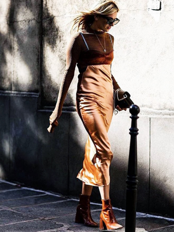 Η Camille Charriere φόρεσε ένα πανέμορφο πορτοκαλί, μίντι φόρεμα, το οποίο απογείωσε με ένα ζευγάρι πορτοκαλί μπότες Mango.